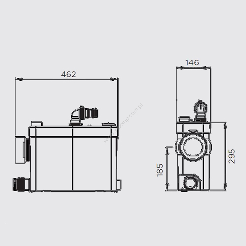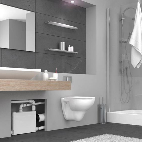 Urządzenie Sanipack Plus to rozdrabniacz do współpracy z systemami podtynkowymi umożliwiający łatwe podłączenie: