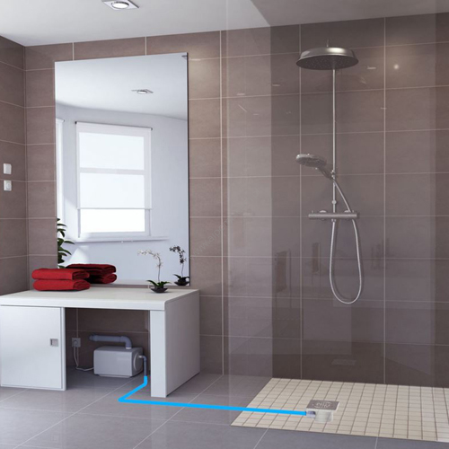 SANIFLOOR jest pompą do ścieków szarych, której zadaniem jest zasysanie ścieków z kratki odpływowej do pompy, a następnie przetłoczenie ich do oddalonej kanalizacji. Dzięki takiej konstrukcji istnieje możliwość wykonania kratki odpływowej w posadzce, co pozwala na dowolną aranżację przestrzeni w łazience. Urządzenie występuje w trzech opcjach: