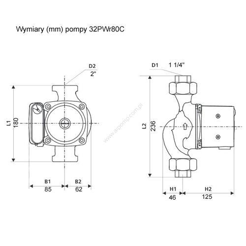 Parametry pompy cyrkulacyjnej 32PWr80C:
