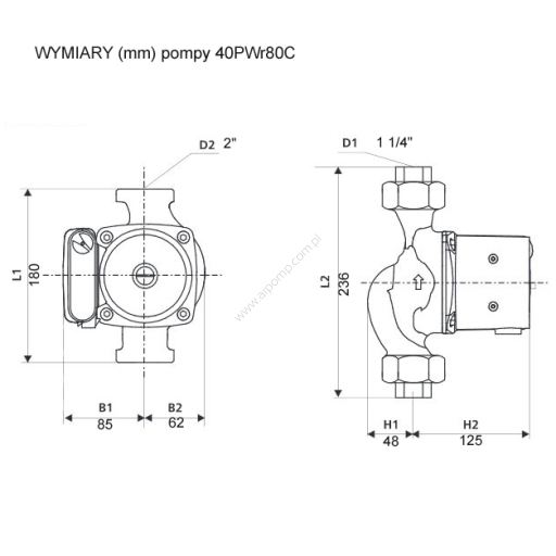 Parametry pompy cyrkulacyjnej 40PWr80C: