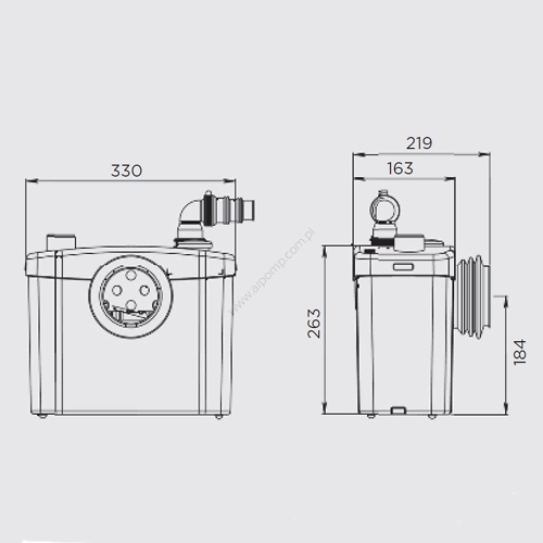 Znajduje zastosowanie wszędzie tam, gdzie wymagane jest odprowadzenie ścieków z urządzeń sanitarnych, a nie jest dostępny lub możliwy odpływ grawitacyjny do kanalizacji. Doskonale nadaje się do zastąpienia wcześniejszego modelu w bardzo łatwy sposób, bez konieczności przeprowadzania modyfikacji przłączy. Filtr węglowy do neutralizacji zapachów oraz akcesoria do instalacji w zestawie.